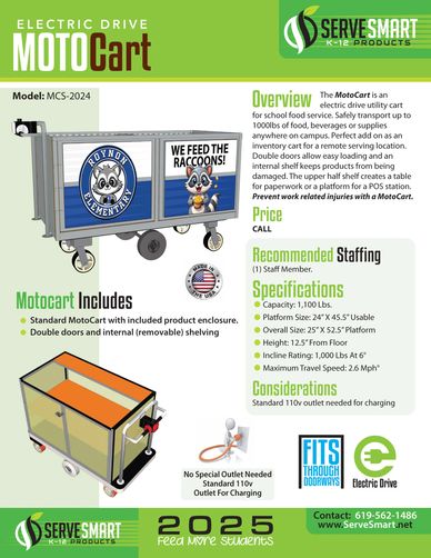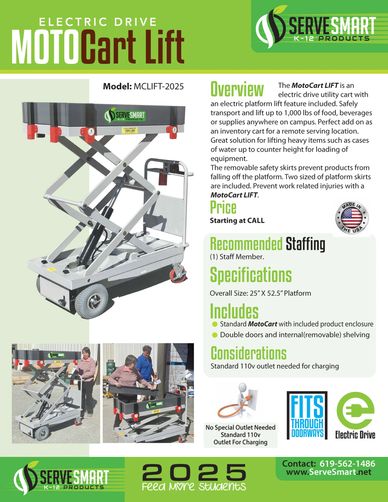 Platform Lift-Electric propulsion designed for transporting food/beverages/supplies.